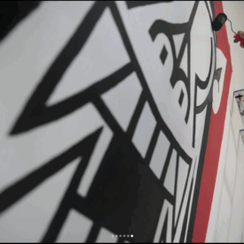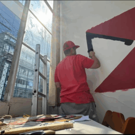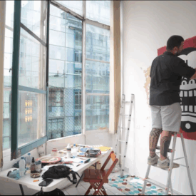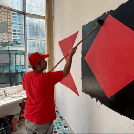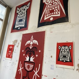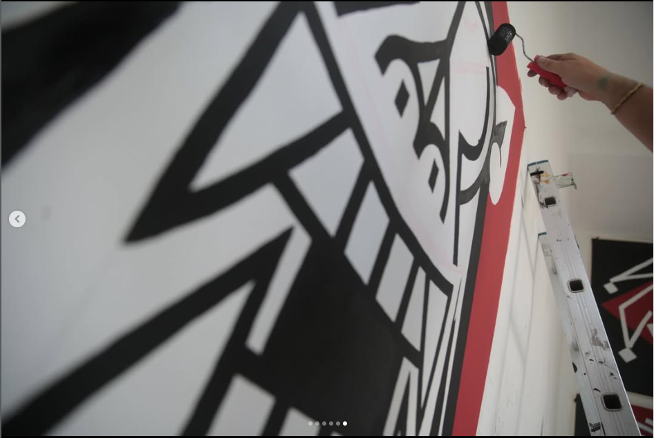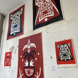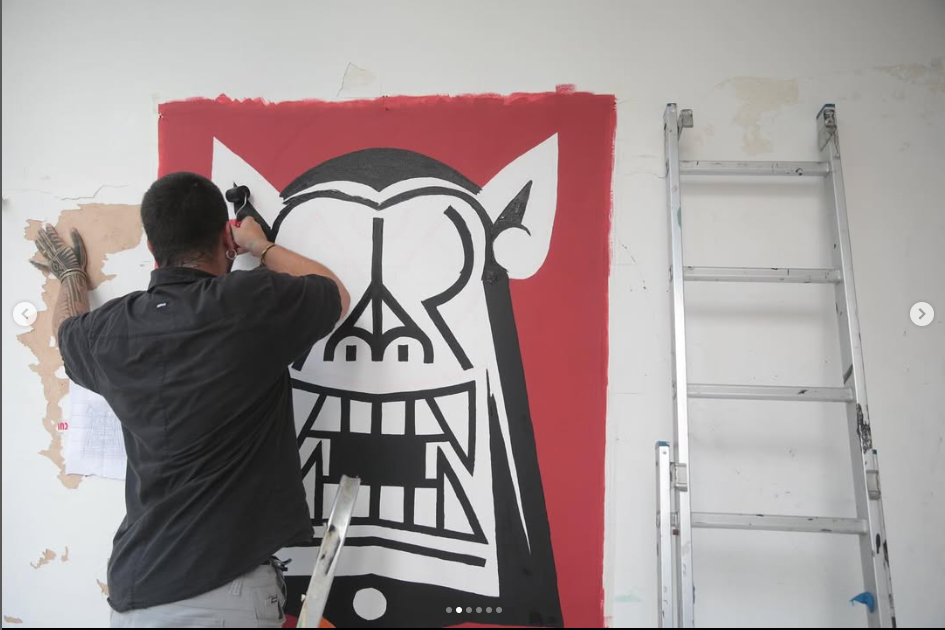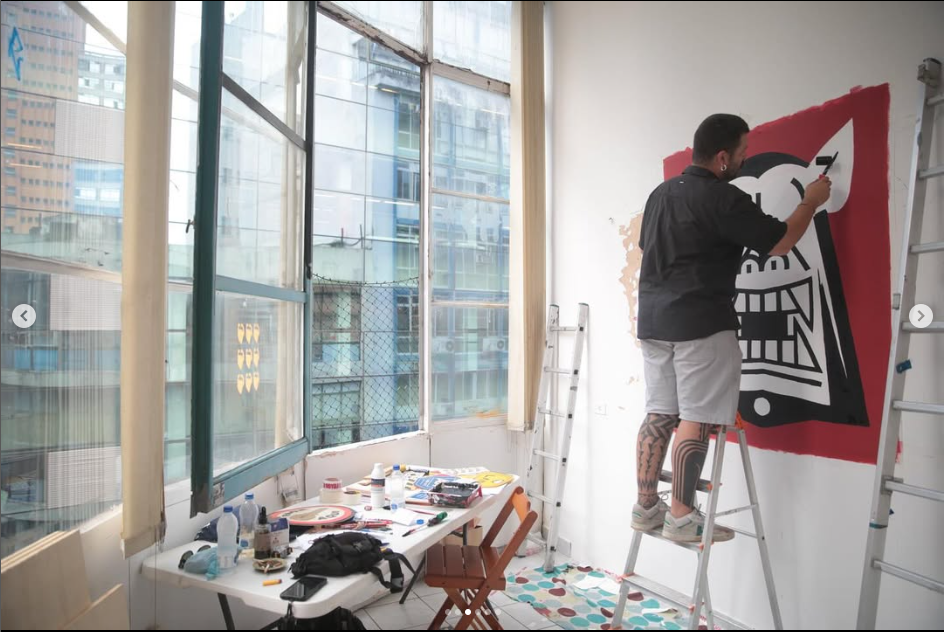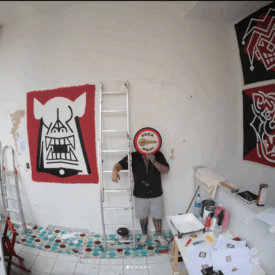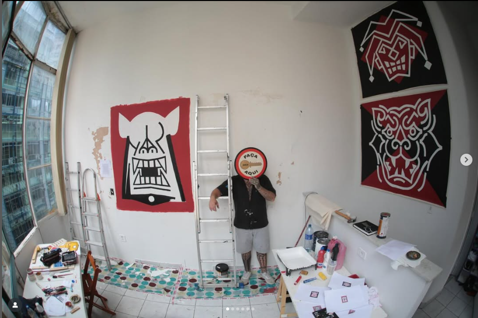 Felipe Risada estampa sua arte nos muros, em placas, produtos e na pele de quem se arrisca e confia em seu riscado. São vinte anos de trabalho nas ruas, pintando e desenhando graficamente ícones e símbolos que lhe convém. As cores usadas são principalmente o branco, o preto e o vermelho que reforçam a linguagem da comunicação de massa das quebradas mundanas e espirituais. O artista constrói sua narrativa imprimindo sua mensagem de luta sobre as circunstâncias da vida.